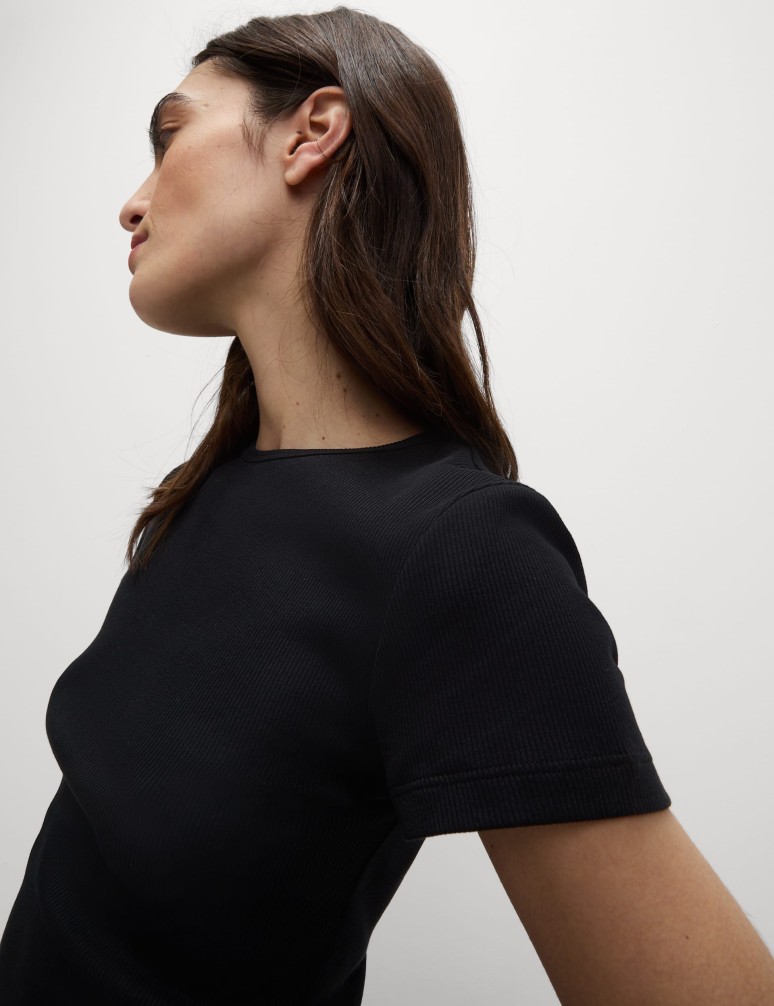 • Žebrované tričko úzkého střihu s vysokým podílem bavlny